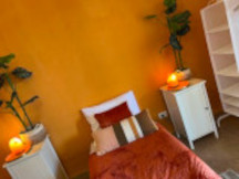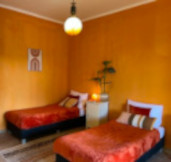 Deze slaapkamer heeft openslaande deuren aan de voorzijde en geeft hierdoor direct toegang tot de grote schitterende veranda .. Deze vierpersoonskamer is voorzien van twee eenpersoons boxsprings en een stapelbed .. De kamer is recent vernieuwd en voorzien van een nieuwe vloer .. en is ongeveer 17 m