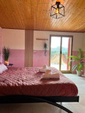 , met uitzicht over de bergen ..