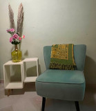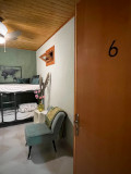 . Het authentieke houten plafond is bewaard gebleven zodat u nog steeds de bijzondere sfeer van het pand, die in de jaren 70 gebouwd is, kunt voelen. Aan het plafond hangt een ventilatorlamp ..